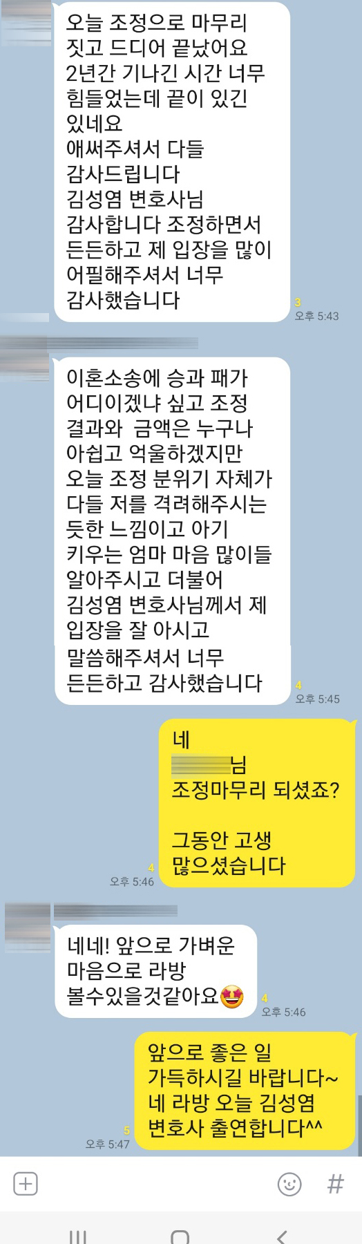 2년가까이 진행된 이혼소송에서 조정성립되고 남겨주신 의뢰인 감사인사
