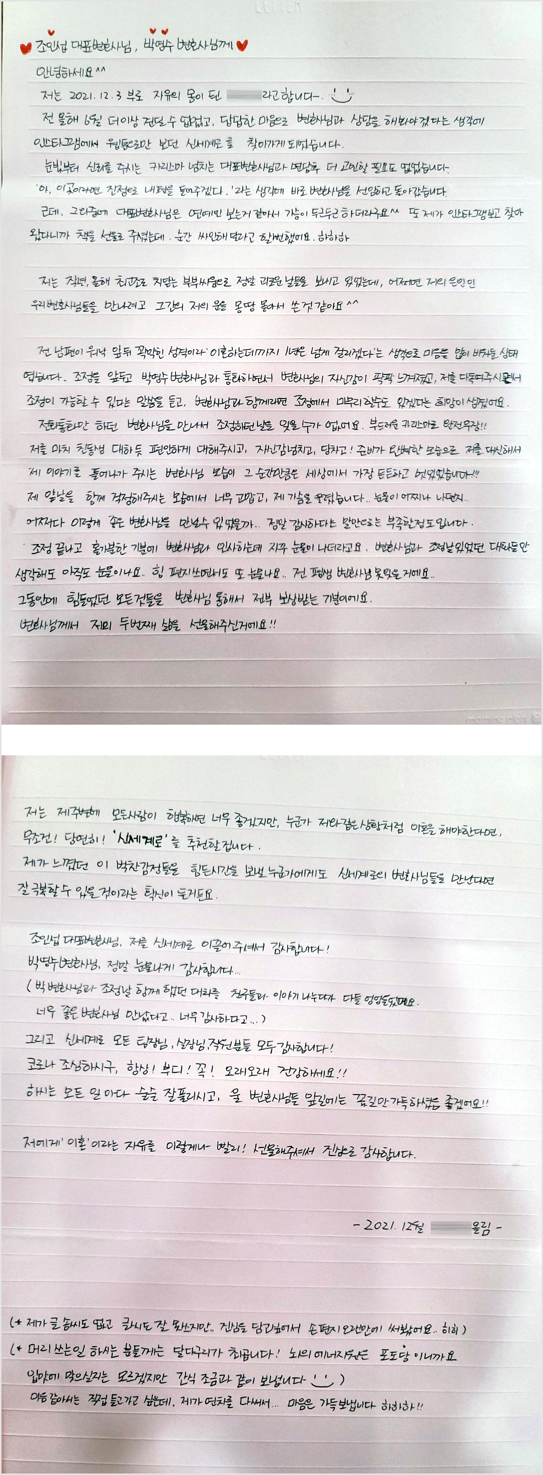 조정으로 마무리된 의뢰인이 보내주신 손편지