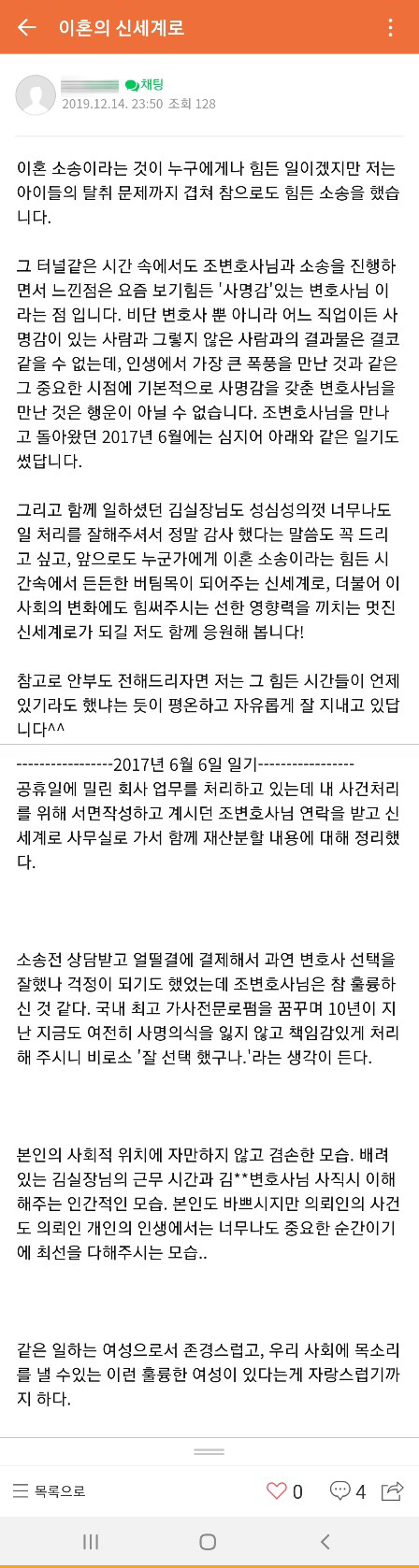 오랜 이혼 소송의 결과로 양육권까지 확보한 의뢰인의 감사인사