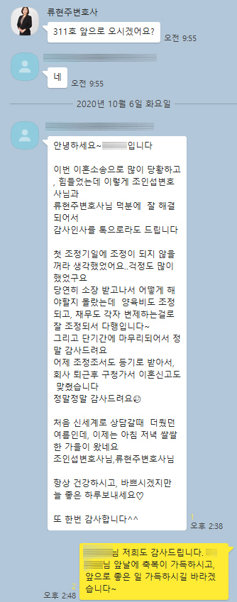 3개월만에 빠르게 조정성립하고 마무리된 의뢰인의 감사인사