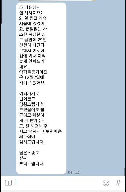 이혼승소 후 상간자 소송만 남은 상황에서, 의뢰인의 메세지